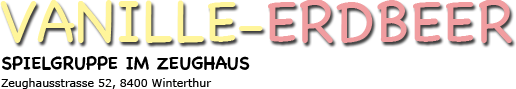 In der Spielgruppe Vanille-Erdbeer hat jedes Kind Gelegenheit in der Gruppe, allein oder zu zweit Neues zu entdecken, Freundschaften zu schliessen, Grenzen zu sprengen, Spass zu haben, nach Lust und Laune zu experimentieren, mit allen Sinnen wahrzunehmen...